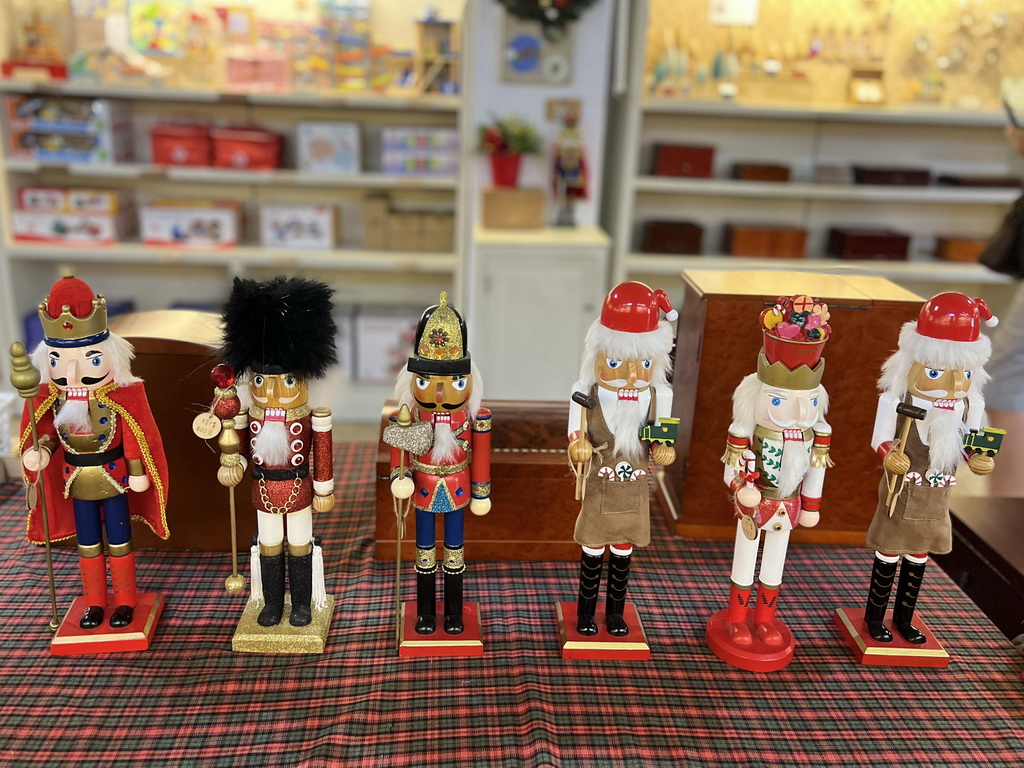 販售部裡的展示更是令人目不暇給,琳瑯滿目的胡桃鉗娃娃與手工音樂盒,每一款造型都充滿童話色彩,讓人仿佛置身童話故事。