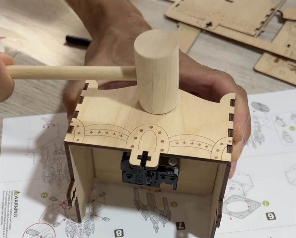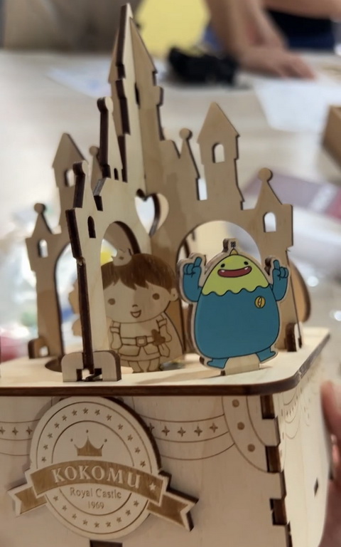 從拆解木製零件、敲打卡榫、組裝城堡與機芯,到最後插上可愛的「噗哩」人偶,整個過程大約只需30分鐘。就算是完全沒有經驗的小朋友,也能輕鬆完成!
