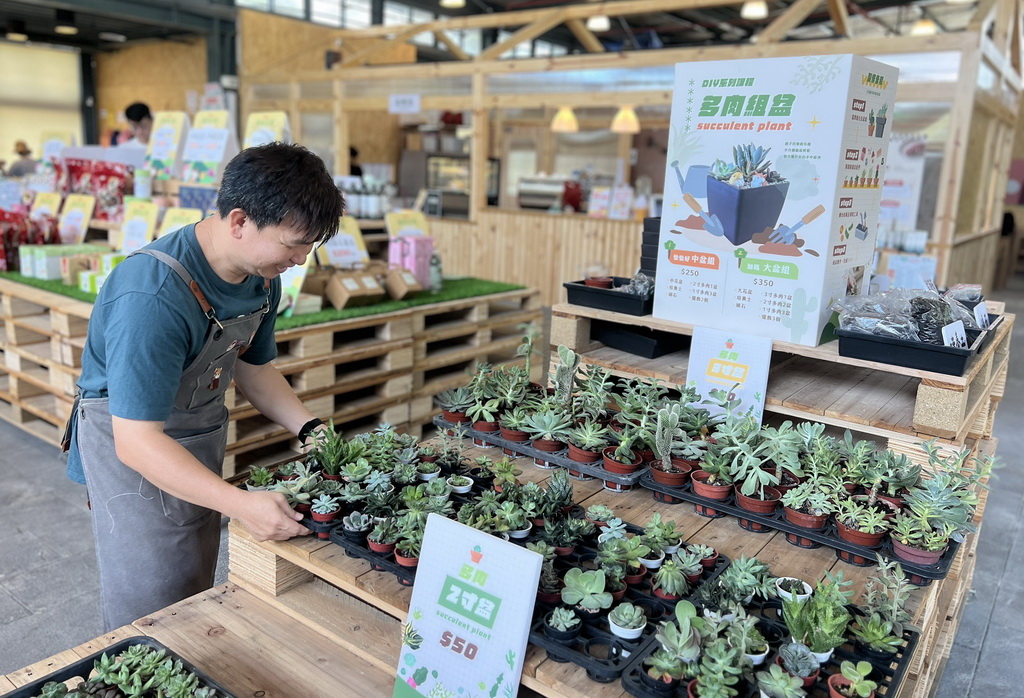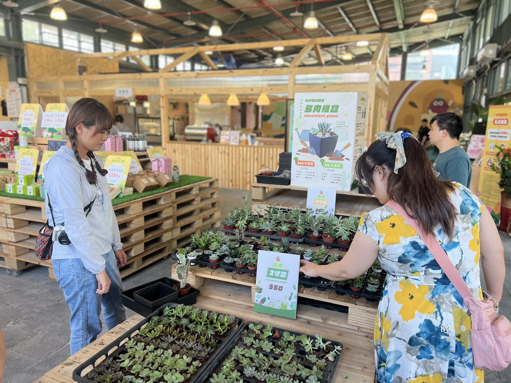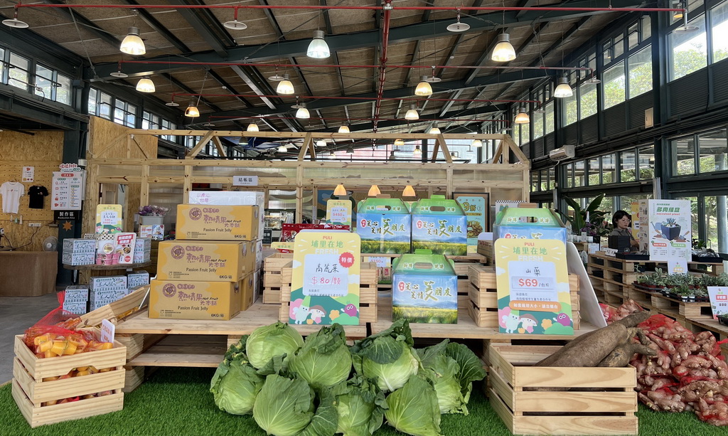 一進門就被滿滿的南投味包圍,筊白筍、高麗菜、埔里香菇、百香果、農產品、文創小物、多肉植物、鹿角蕨等通通上場