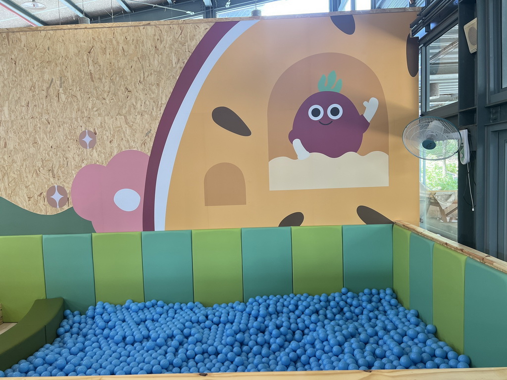 座位旁邊就是明亮寬敞的遊戲區,溜滑梯、球池、扮家家酒通通有,孩子們玩翻天,大人就能悠閒地享受餐點和短暫的放空時光。