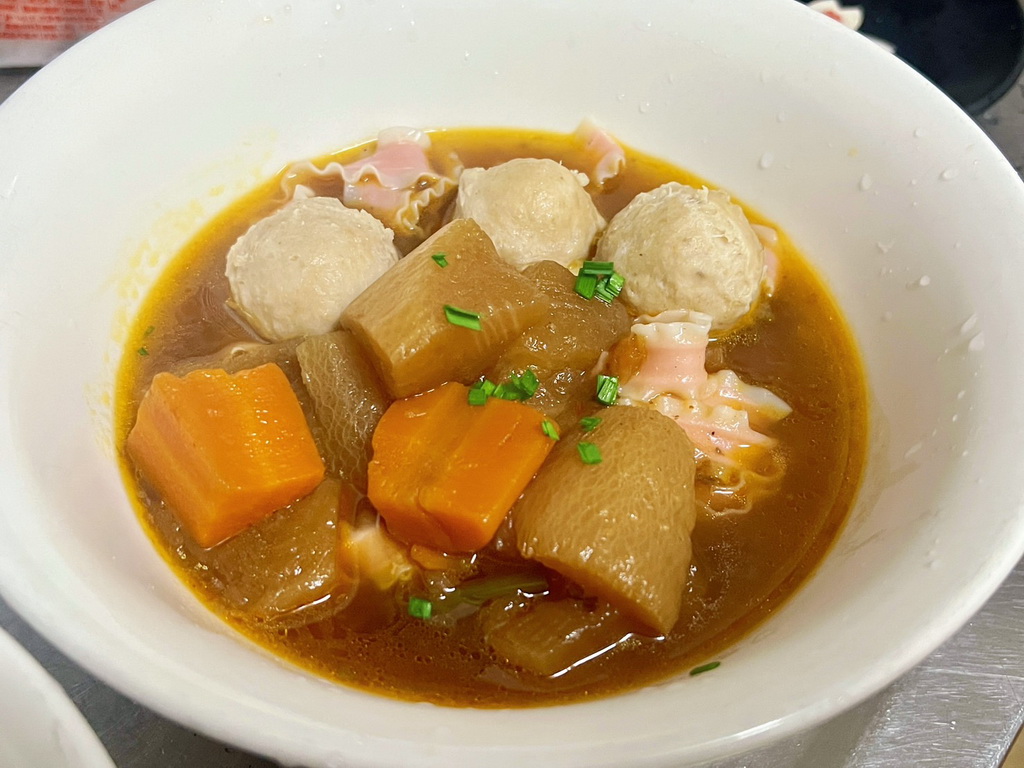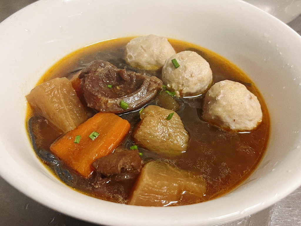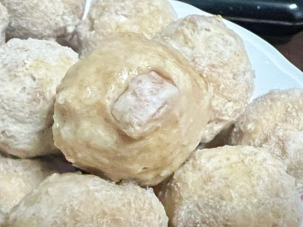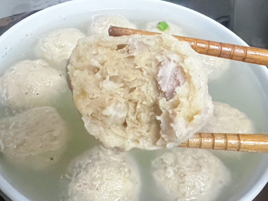芋角貢丸與香甜鬆軟的芋頭塊一起混合在貢丸裡頭,Q彈的豬肉和鬆綿細緻的芋頭,每一口咬下咬下層次豐富、香氣撲鼻。